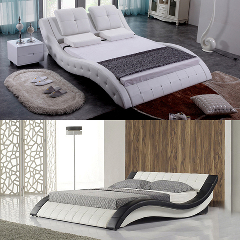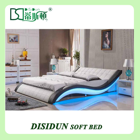 Cama muebles de dormitorio moderno cama de cuero con LED